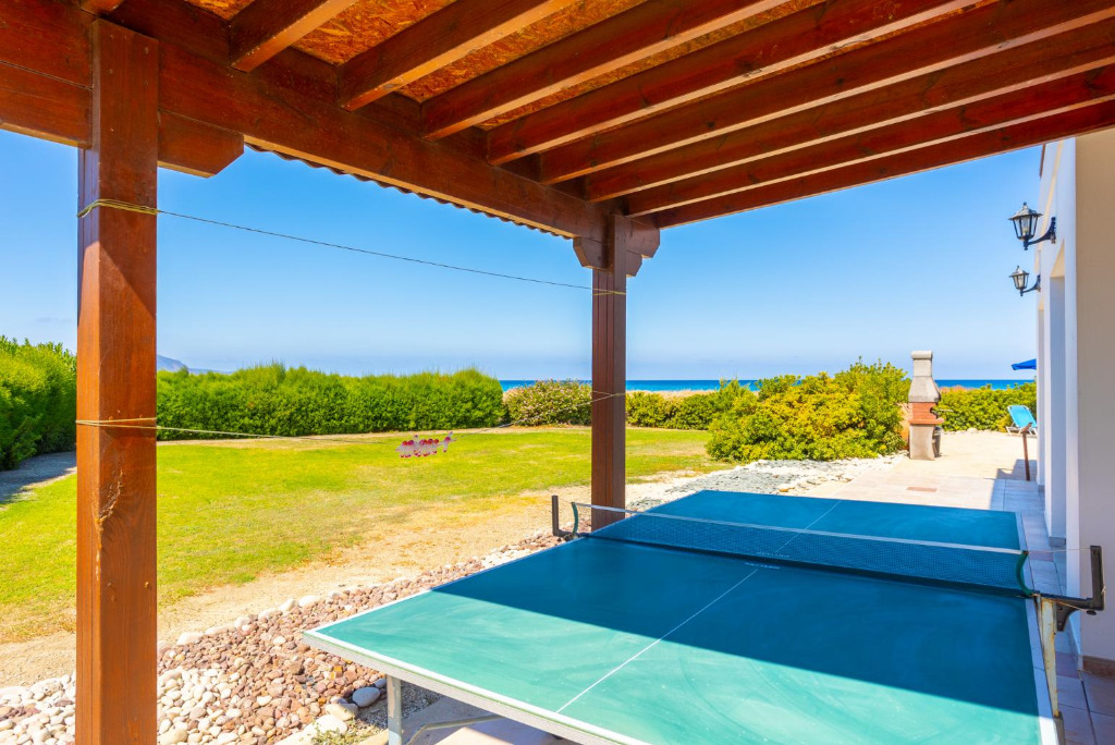 Op de begane grond bevindt zich de open woon/eetkamer met keuken. De woonkamer is ingericht met banken en een salontafel en biedt ook satelliet-tv, dvd en wifi-internet. Het eetgedeelte ligt er direct naast en biedt plaats aan maximaal 6 personen. De keuken is van alle gemakken voorzien, waaronder een vaatwasser, wasmachine en koffiezetapparaat. De begane grond heeft een prachtig uitzicht over het zwembad en de zee.