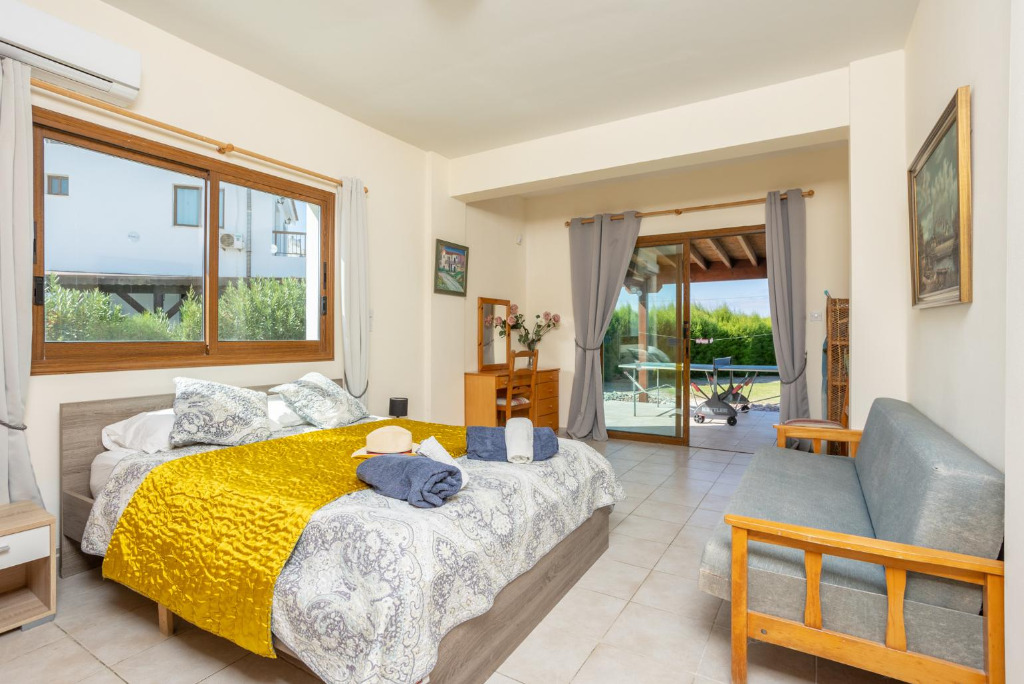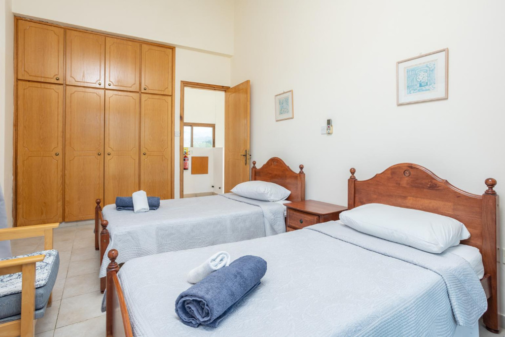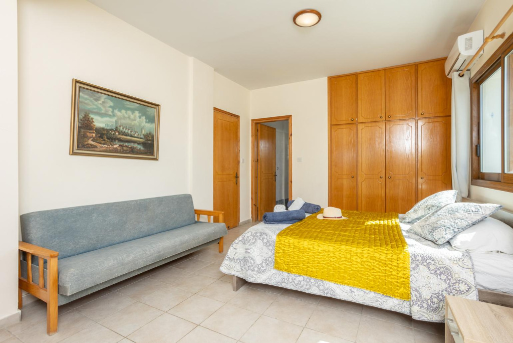 Het strand (zand/kiezel) ligt op slechts 100 meter afstand en is niet erg druk. Het centrum van Polis ligt op ongeveer 2,5 km afstand, met diverse tavernes en winkels. De haven van Latchi is bijna volledig langs het strand te bereiken, dat zou ongeveer 4,5 km zijn.