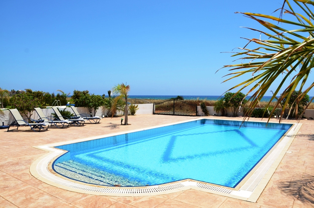 Vanaf de begane grond open patio deuren naar het zwembad. Reeds vanaf de binnenkant kunt u genieten van het prachtige uitzicht op zee. Er is een overdekt terras met tuinmeubelen en een groot zwembad van 10 x 5 m, omgeven door een terras met ligbedden. Zwembad verwarming is beschikbaar voor EUR 45 per dag.